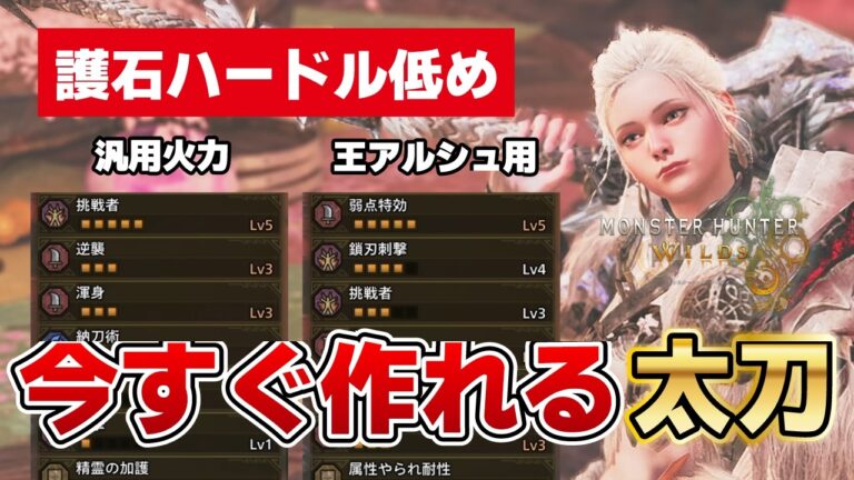 今すぐ作れる最終アプデ後太刀汎用装備&王アルシュ対策装備 アプデ前装備との期待値も比較【モンハンワイルズ】
