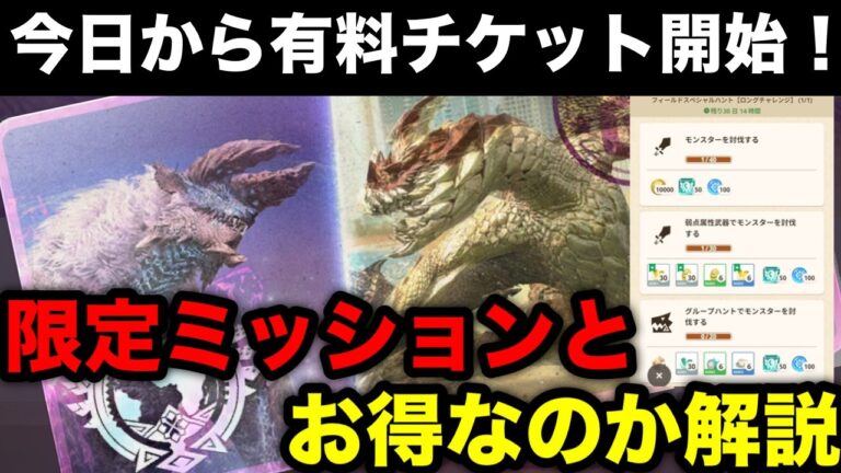 【モンハンnow】今日からフィールドスペシャルハントチケット開始!有料限定ミッションの内容と買うべきか解説!【モンスターハンターNow/モンハンNOW/モンハンなう/モンハンナウ】