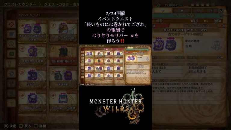 【狩猟動画ギルドのおすすめ動画🐾】狩猟の楽しさが詰まった動画をお届け!今日も最高の狩りを楽しもう!🦅動画内の動画↓ 【モンハンワイルズ】今週は新限定頭装備&星9イャンクック実装!1月14日配信イベクエ初見攻略と報酬確認! モンハンワイルズの動画再生リスト↓ #モンハンワイルズ #モンスターハンターワイルズ メンバーシップ登録はこちらからお願いします! 特典:スタンプ/バッジの利用、モンハンNOWの […]